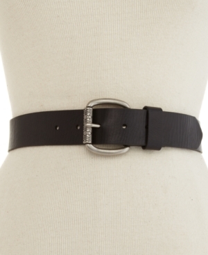 Roll into the weekend with the sleek texture of this rich leather belt from Fossil. The floral-engraved roller buckle adds flair to your Saturday jeans.