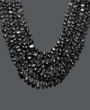 From the Jewels Verne Collection. A bold woven chain of sterling silver with a black rhodium finish has pretty filigree links with red garnet and goldplated accents.