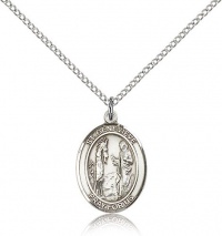 Genuine IceCarats Designer Jewelry Gift Sterling Silver St. Genevieve Pendant 3/4 X 1/2 Inch With 18 Inch Sterling Silver Lite Curb Chain