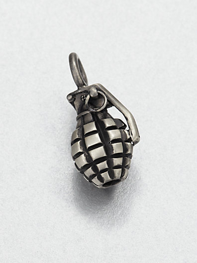 Offset your link chain necklace with a grenade-shaped charm set in antiqued and plated sterling silver for a style that exudes masculine cool.