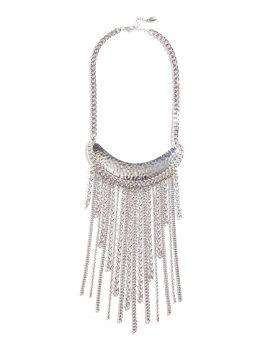 GUESS Women's Straight Up Silver-Tone Fringe Necklace, SILVER