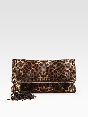 Luxurious haircalf in a chic fold-over design accented with oversized tassel detail and radiant hardware.