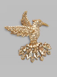 An absolutely stunning heirloom piece that flutters about the lapel or sweater, beautifully handcrafted in goldplated pewter with Swarovski crystal embellishment.