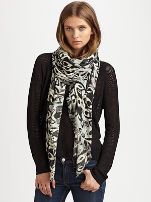 A striking ikat print refreshes this lengthy, lightweight scarf.