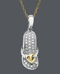 Perfect for the gal who loves fun in the sun. This clever pendant features a flip flop design crafted in sterling silver with a 14k gold heart accent. Sandal sole dusted in sparkling round-cut diamond. Approximate length: 18 inches. Approximate drop: 3/4 inch.
