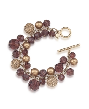 Gorgeous and glittering. Rich brown glass beads, golden glass pearls and sparkling charms embellish Carolee's cluster bracelet. With a secure toggle closure, it's crafted in gold tone mixed metal. Approximate length: 8 inches.