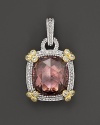 From John Hardy's Batu Collection, a square pendant with clusters of sapphire. Hangs on woven link chain.