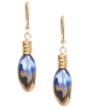 Kenneth Cole New York Earrings, Gold Tone Blue Two Tone Bead Drop Earrings