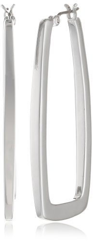 Kenneth Cole New York Shiny Silver Skinny Rectangle Hoop Earrings