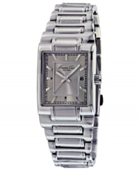 Kenneth Cole New York's contemporary take on a timeless design. This watch features a rectangular stainless steel case and bracelet. Gray dial with silvertone stick indices, logo and date window. Analog movement. Water resistant to 30 meters. Limited lifetime warranty.