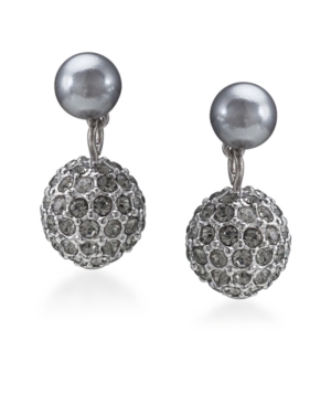 Like glittering disco balls, these stunning studs by Carolee will make you want to get up and dance. Earrings feature charcoal-colored glass pearls with a black crystal coated ball drop (9 mm). Crafted in silvertone mixed metal. Surgical steel posts. Approximate drop: 3/4 inch.