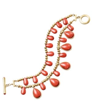 Infuse your style with tropical hues. Lauren Ralph Lauren's vibrant two-row bracelet features teardop-shaped reconstituted coral beads set in gold tone mixed metal. Approximate length: 7-1/2 inches.