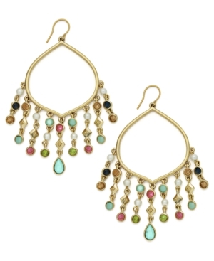 Bohemian bliss. Lauren Ralph Lauren's gypsy hoops shine with the addition of multicolored acrylic stones and glass pearls (4 mm). Set in 14k gold-plated mixed metal. Approximate drop: 3 inches. Approximate diameter: 1/2 inch.