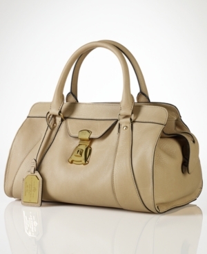 Get on the fashion fast-track to ladylike style with this softly structured satchel from Lauren Ralph Lauren. Luxe leather is charmingly accented with logo-embossed detailing, while the pocket-lined interior keeps essentials easily at hand.