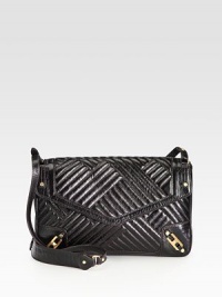 This supple leather style features a graphic topstitched pattern and goldtone hardware.