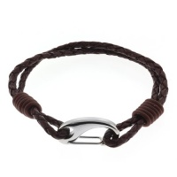 Men's 8" Brown Leather Bracelet With Stainless Steel Clasp