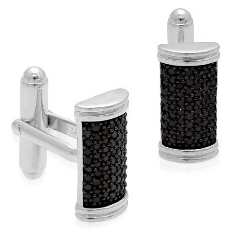 Men's Sterling Silver Black Diamond Cuff Links (1.00 cttw)