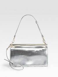 A sleek design in scored, metallic leather with a modern grid pattern.
