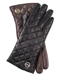 Join the quilted crowd with these luxe, leather gloves from MICHAEL Michael Kors. Chic signature-embossed detailing adds a touch of elegance, for a look that's altogether exquisite.