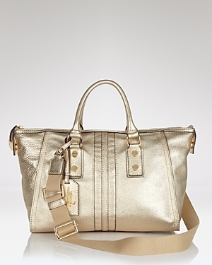 Give your accessories portfolio a Midas touch with Milly's shapely leather satchel. Shoulder it or handle it -- this gilded bag goes where you want with ease.