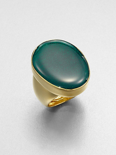 A rich style featuring a glossy, mottled stone on a solid shank.