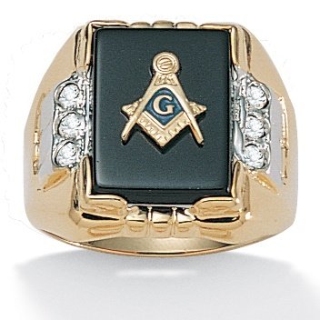 PalmBeach Jewelry Men's Genuine Onyx Crystal Accent 14k Yellow Gold-Plated Masonic Emblem Ring