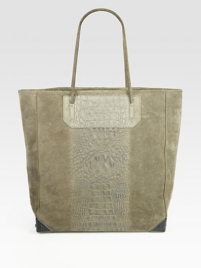 A crocodile-embossed panel is at the center of this chic carryall, made of sumptuous suede.