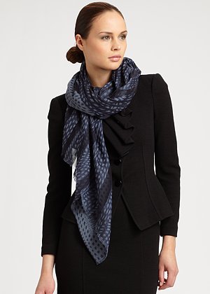 A semi-sheer, lightweight style in a burnout design with reptile print and eyelash fringe.
