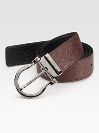 An adjustable, reversible dress look crafted in Italy from printed calfskin leather with a classic ruthenium buckle.