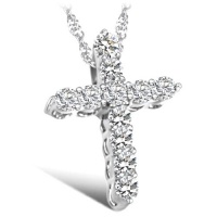 Rhodium Plated Cross Pendant Necklace with Crystal Cubic Zirconia Pave Cross Pendant in Clear or Purple Color