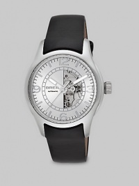 A modern timepiece destined for years of use with a sleek skeleton face, luminous markers and the durability of stainless steel.