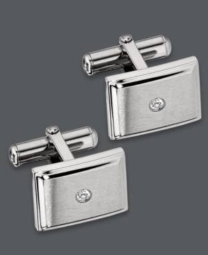 Polish, shine and presentation. Complete your overall look with the perfect finishing touch. Rectangular cuff links feature a sparkling diamond accent set in stainless steel. Crafted with a swivel backing for easy use. Approximate length: 5/8 inch. Approximate width: 1/2 inch.