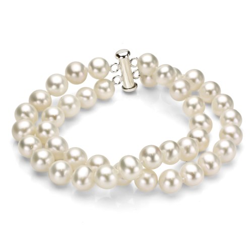 Sterling Silver 2 Rows 8-9mm White Freshwater Pearl Bracelet 7.25". - Most Wanted Holiday Gift