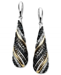 A luxurious, swirling mix. These stunning drop earrings combine a sterling silver and 14k gold setting with round-cut black diamonds (3/8 ct. t.w.) and white diamonds (1/10 ct. t.w.) for ultimate sparkle. Approximate drop: 1-1/4 inches.
