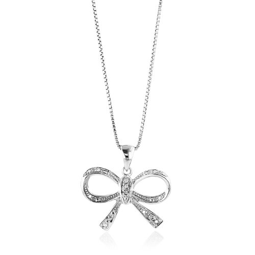Sterling Silver Diamond Accented Bow Pendant/Necklace with 18" Chain