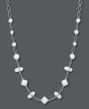 Simple shapes add a stylish touch. This sterling silver necklace features an oval link chain with square, round and oval shaped white agate stones (9 mm, 6mm and 8mm). Approximate length: 18 inches.