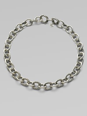 From the Oval Link Collection. Large sterling silver links alternate between smooth and cabled in a chain to wear alone or with a jeweled enhancer.