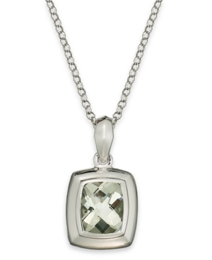 Glamorous green. This pretty pendant features a chic cushion shape that highlights a green quartz stone (5 ct. t.w.) bezel set in sterling silver with a matching chain. Approximate length: 18 inches. Approximate drop: 1/2 inch.