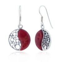 Sterling Silver Red Coral Yin Yang Symbol Earrings for Women
