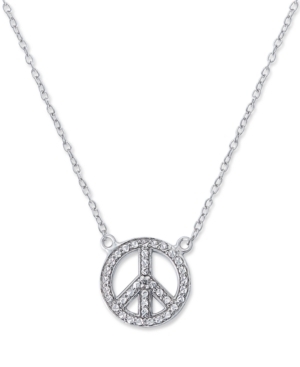 Give peace a chance! Studio Silver's symbolic statement pendant features a cut-out peace sign shape with a unique textured surface. Set in sterling silver with rhodium plating to prevent tarnishing. Approximate length: 16 inches + 2-inch extender. Approximate drop: 1/2 inch.
