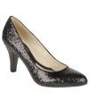 Runway-worthy suede design with an iconic sculpted platform and semi-sheer ruffled heel.