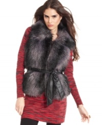 Get vested. This winter will feel balmy with this cozy, faux fur vest from Surell. Front zip closure and chic leather belt keep the cold from coming in, while side pockets offer an oasis of warmth for chilly hands.