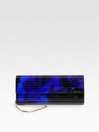 This rock n' roll-inspired acrylic clutch can be worn on the shoulder with a versatile chain strap.