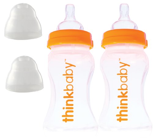 Thinkbaby 2 Pack BPA Free Vented Baby Bottles, 9 Ounce, Natural/Orange