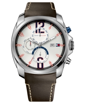 Tommy Hilfiger Watch, Men's Brown Leather Strap 45mm 1790834