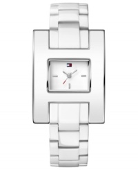 Iconic Tommy Hilfiger style marks this unique white-on-white watch.