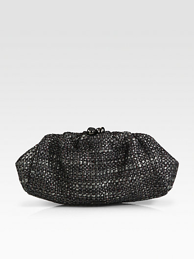 Offering an exquisite display of woven tweed, a clutch bag that is simply elegant.