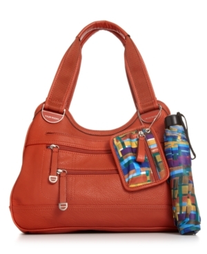 Whether you're running weekend errands or rushing off to work, this spacious shopper from Tyler Rodan is the perfect choice. The triple entry design is outfitted with plenty of pockets and compartments and features complementary coin purse and portable umbrella.