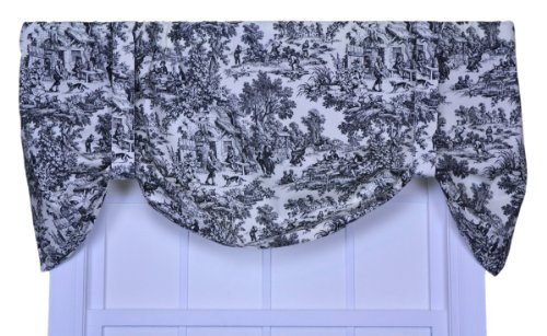 Victoria Park Toile Tie-Up Valence Window Curtain, Black
