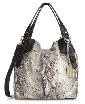 Spice up your look with a daring snakeskin embossed tote from Vince Camuto. Luxe leather trim and glam gold-tone hardware add perfectly polished touches.